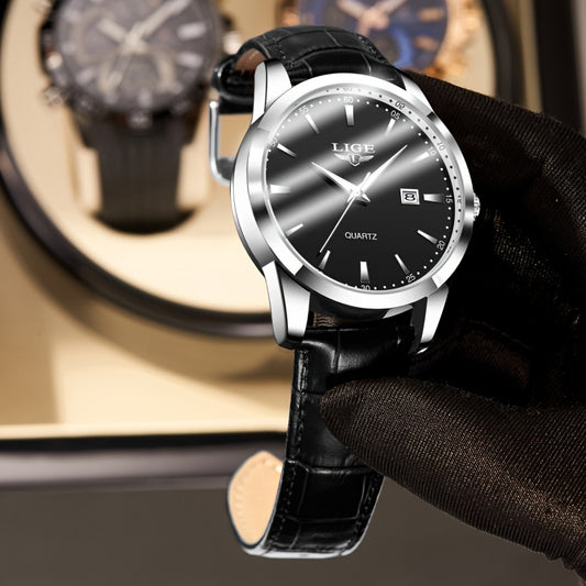 LIGE-ի ոճային ժամացույց՝ գործնական և առօրյա դիզայնի համադրությամբ, արհեստական կաշվե ժապավենով, համաձուլվածքից պատրաստված պատյանով և չլիցքավորվող մարտկոցով։