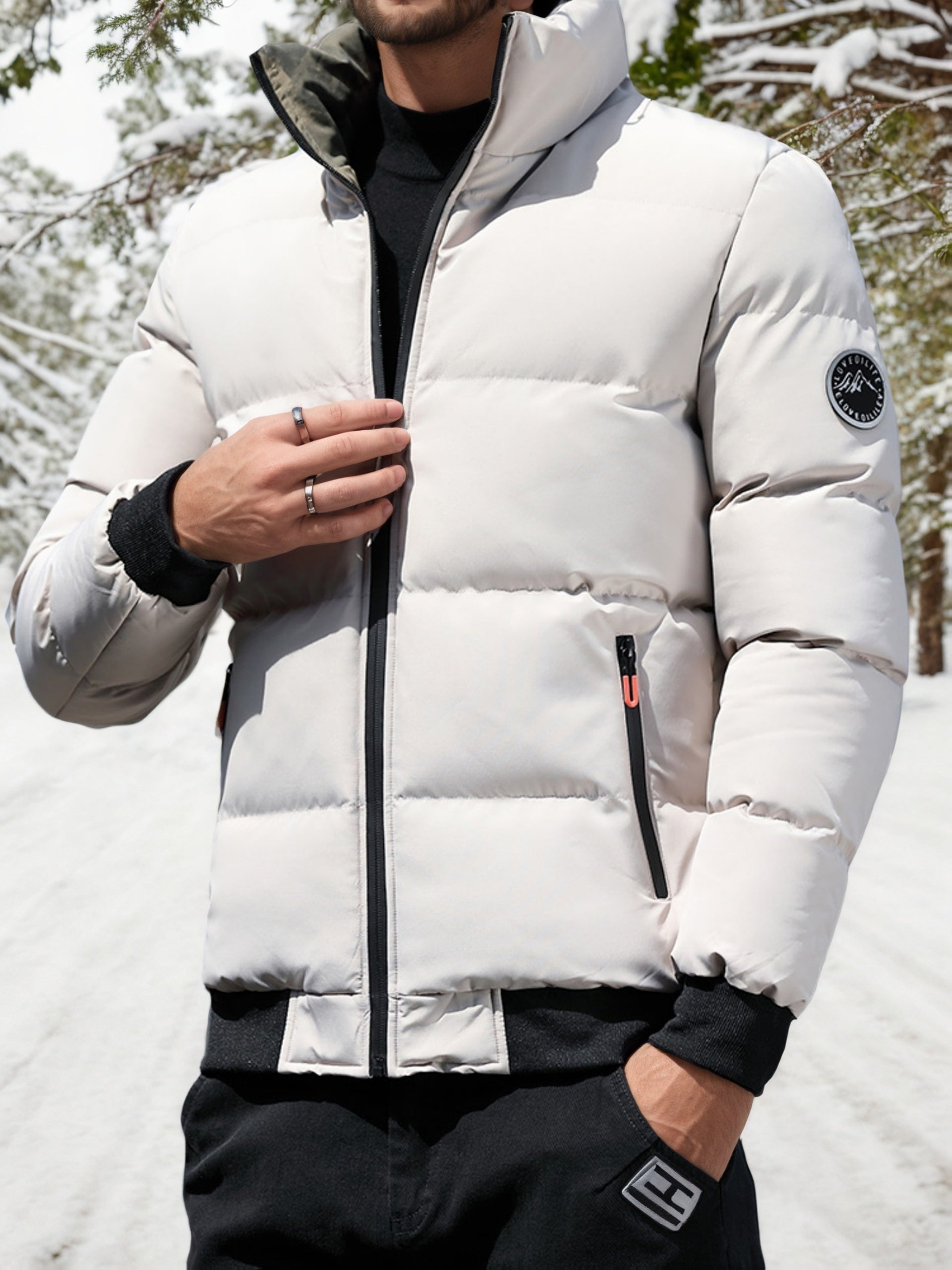 Men's Heavyweight Winter Coat - Full-Zip Cold Weather Jacket, Stand-Up Collar, Exterior Zipper Closure, Machine Washable Outer Shell for Everyday & Formal Wear - Black, Seasonal Layering, Sleek Design, Durable Fabric, Urban C