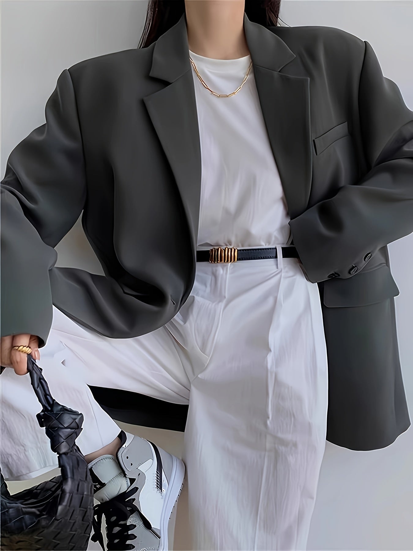 Women'S Chic Casual Blazer - Polyester, Solid Color, Long Sleeve, Button Front with Pockets, Loose Fit, Spring/Fall Jacket, Casual Wear Jacket|Minimalist Jacket|Single lapel Jacke