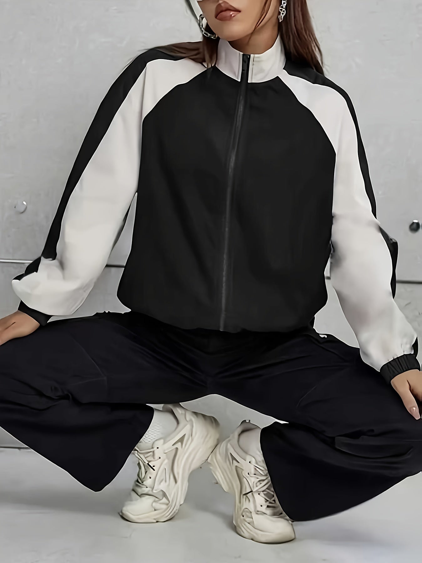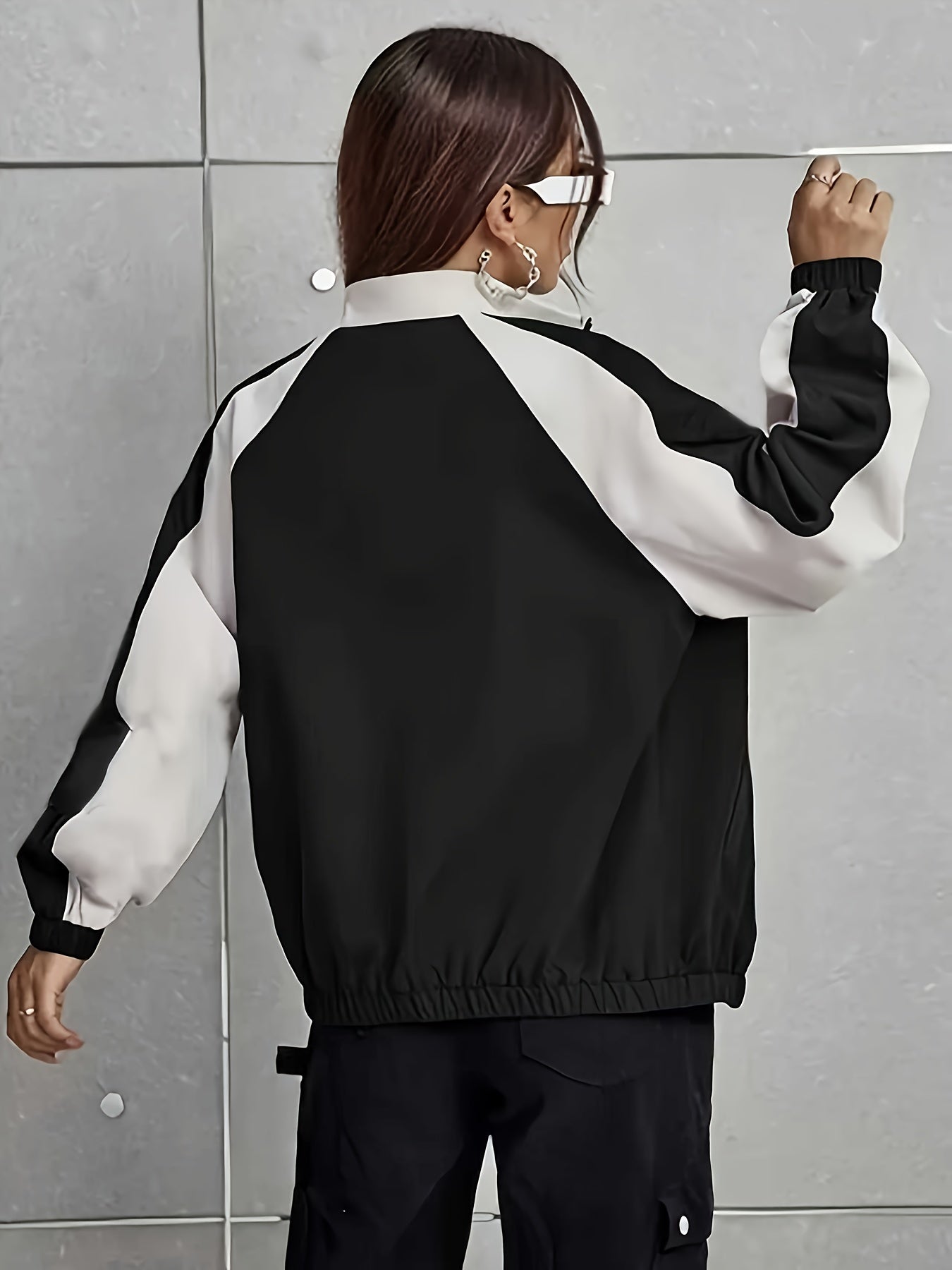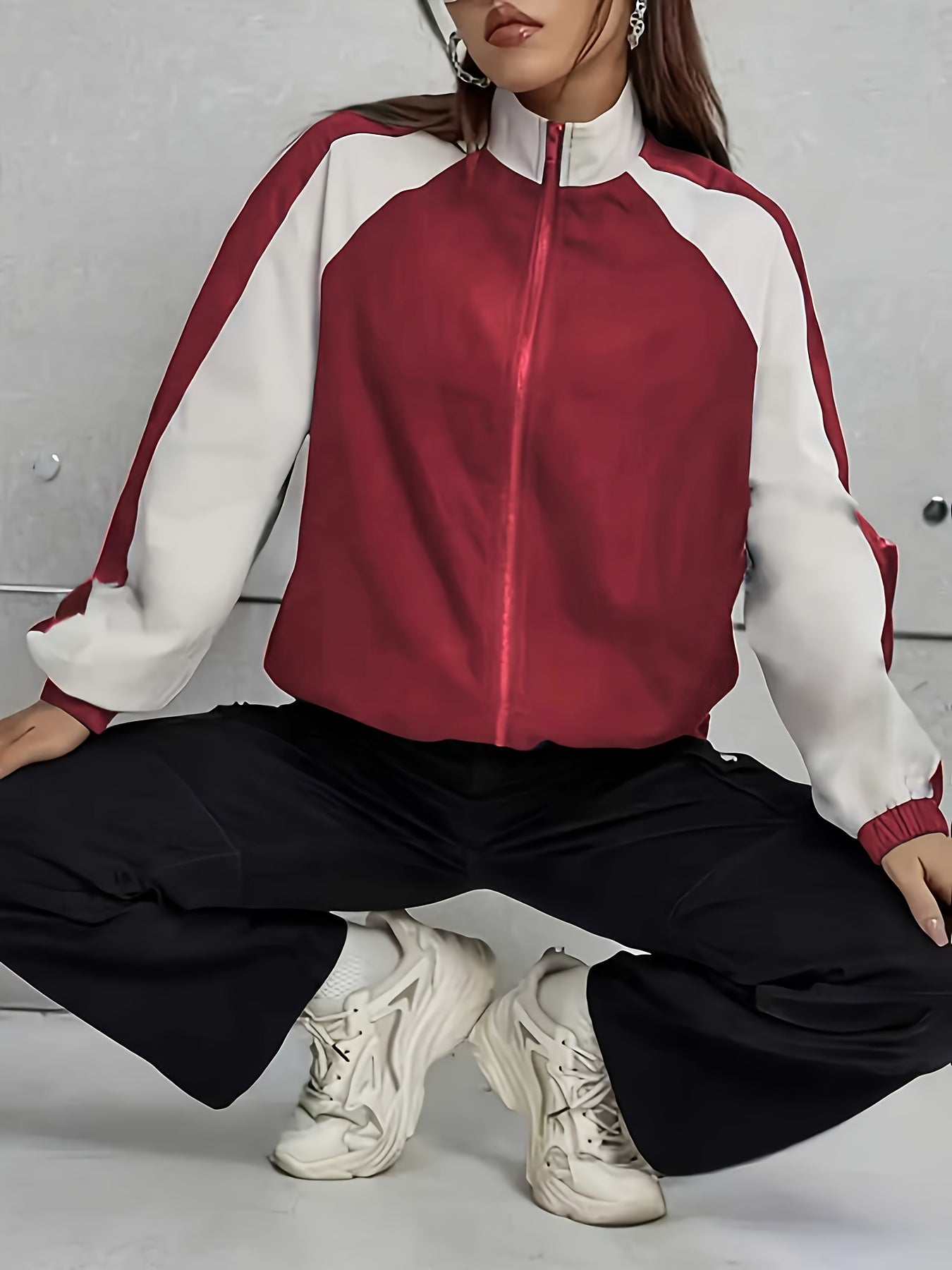 Women's Elegant Mandarin Collar Jacket - Burgundy & Half-Zip Coat with White Piping, All-Season Structured Outerwear (Black /Notch), Machine Washable Casual to Formal Blazer for & Social Events, Jackets For Women, Jacket For