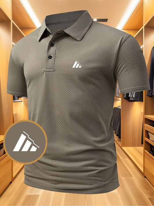 Men'S Casual Short Sleeve T-Shirt - Solid Black, Regular Fit, Button-Up Collar, Lightweight Polyester Blend for Spring & Summer, Spring Summer Apparel | Classic Collar Tee | Glossy Texture