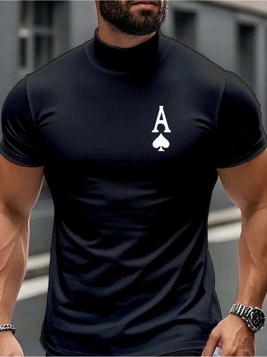 Short-sleeve High-neck Fashion Trendy Instagram Minimalist Creative Spade A Pattern Sports Fitness Running Training Casual Men's Short-sleeve