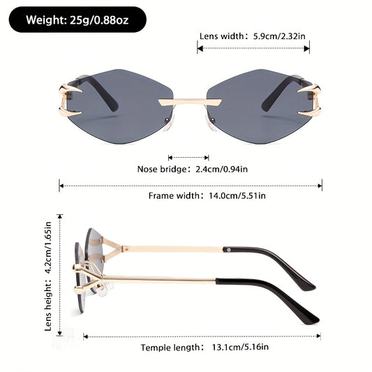 • 1pc Frameless Rhombus Polygonal Fashion Glasses - Retro Style Irregular Lens Design, Black & Golden Unisex Fashion Eyewear for Photography Props, Birthday Gifts, Valentine’s Day, Lunar New Year, Mardi Gras (132-138mm)