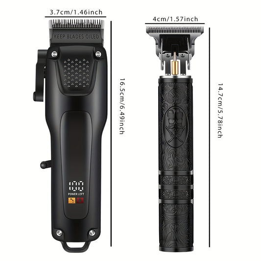 WEEME Men'S Electric Haircut Kit 1pc Men'S Hair Clipper + 1pc T-Blade Trimmer Sharp Precision Haircutting, LED Digital Display, Cordless Portable Use, Suitable for Haircutting, Beard Trimming, Sculpting Styling, Home Travel
