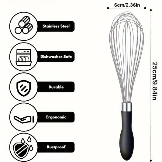 Durable Stainless Steel Whisk with Comfort Grip Silicone Handle - Perfect for Blending, Beating & Stirring - Essential Kitchen Tool for Restaurants & Food Trucks