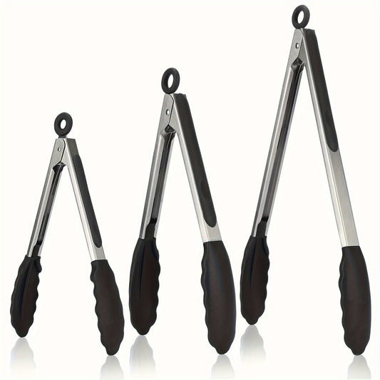 Stainless Steel Kitchen Tongs Set, Non-Slip Grip, Multi-Purpose Cooking Utensils for Grilling, Serving, And Salad, Metal Food Grabber for Bread And BBQ - Home Kitchen Accessories