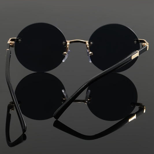 Unisex Round Frameless Glasses with Blue-Tinted Polycarbonate Lenses & Golden Accents - Lightweight Durable PC Frame for Casual, Party, Daily Wear - Perfect Graduation, Back-to-School, Christmas Gift
