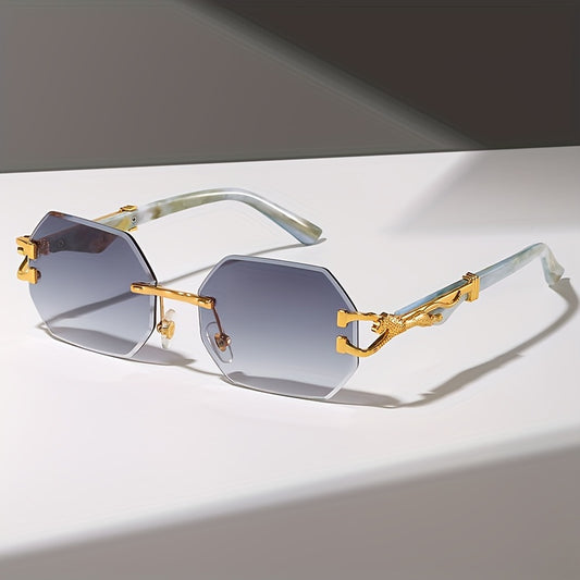 1pc Frameless Rhombus Polygonal Fashion Glasses - Retro Style Irregular Lens Design, Black & Golden Unisex Fashion Eyewear for Photography Props, Birthday Gifts, Valentine’s Day, Lunar New Year, Mardi Gras (132-138mm)
