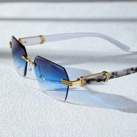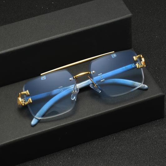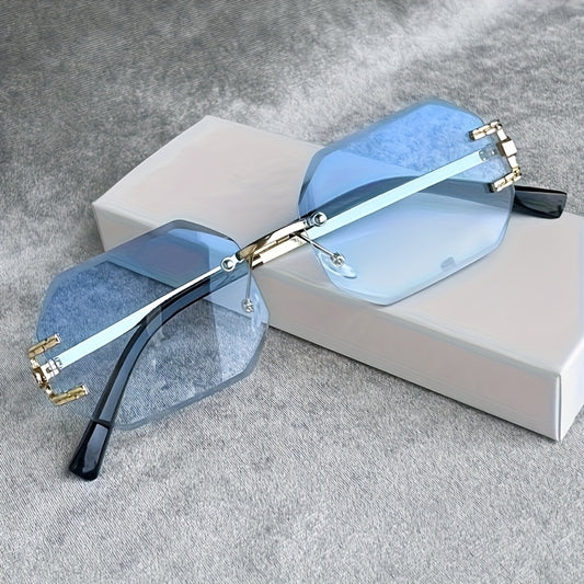 1 Pair Y2K-Inspired Rimless Fashion Glasses - Blue & Golden Frameless Eyewear with Polycarbonate Lenses, Lightweight Durable Design for Men & Women, Casual Streetwear, Parties, Holidays & Everyday Fashion Accessories, Party E