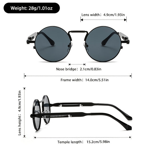 Vintage Round Frame Punk Style Metal Frame Glasses for Men & Women - Stylish Retro Design with Black Tinted Lenses, Durable PC Material, Perfect for Birthday Gifts, Photography Props & Fashion Accessories, Vintage Glasses