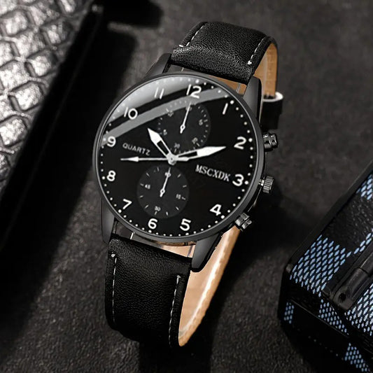 Stylish Men's 3pcs Set: Quartz Watch, Glasses & Wallet - Faux Leather Strap, Alloy Case, Digital Dial - Perfect for Gifts & Casual Attire