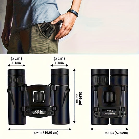 10x22 Compact Folding Binoculars HD Lightweight Pocket Size with Prism Imaging & Center Focus - Durable Plastic for Exploration, Concerts, Sports Events, Compact Binoculars
