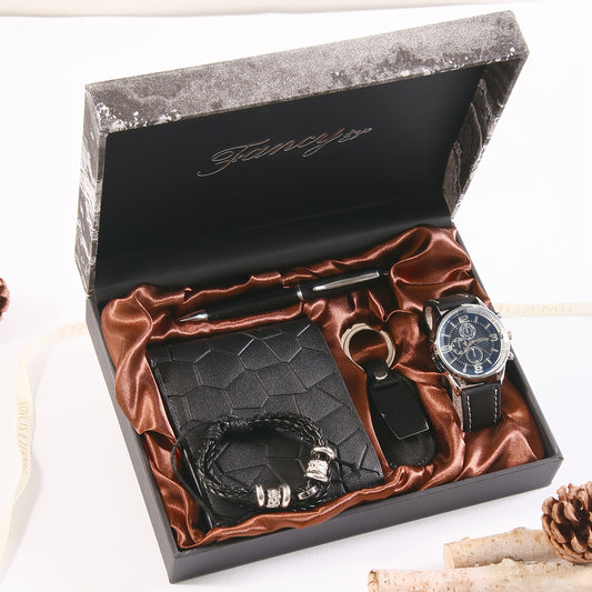 Christmas Gift Box Set of Six, Wallet + Watch + Bracelet + Keychain + Pen + Wooden Gift Box