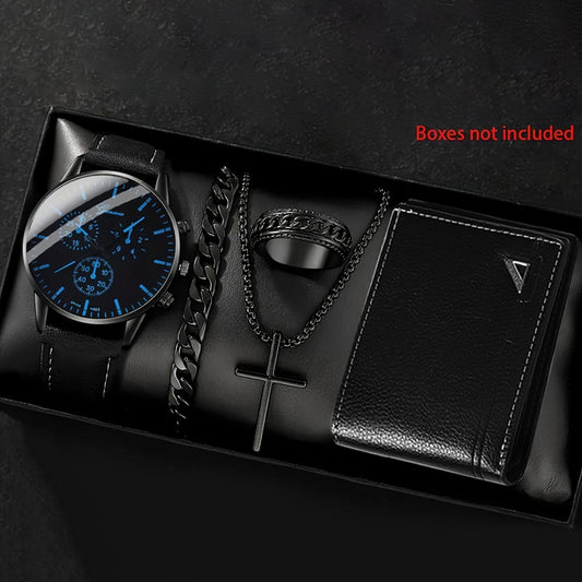5pcs Men'S Business Sports Watch, Wallet, Glasses, Pen and Keychain Set in a Gift Box Suitable for Father'S Day, Anniversaries, or Birthdays