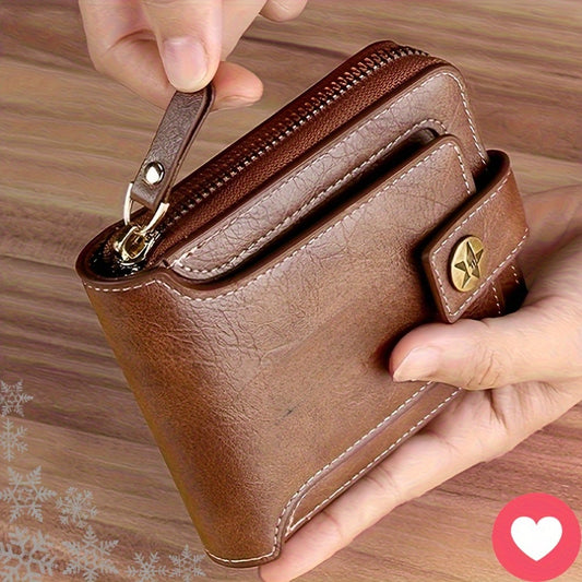 Women's Vintage Compact Wallet - Short Billfold with Multi-Card Holder, Cash Pocket & Wrist-Friendly design - Gift for Girlfriend, Wife (Birthday/Mother's Day Present) - Solid Color Handbag Accessory)