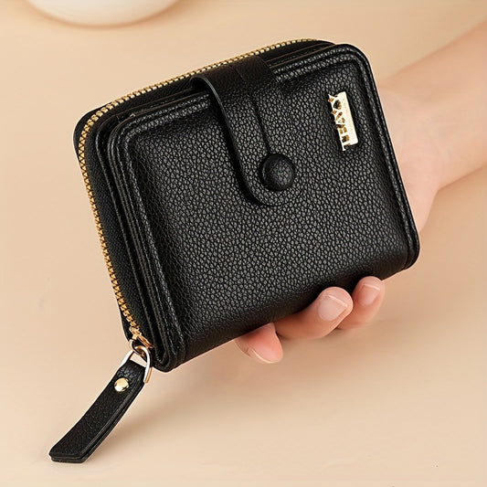 New Casual Zippered Coin Purse, Short Wallet for Women, Stylish Solid Color Lychee Pattern with Multiple Card Slots And Clasp Closure