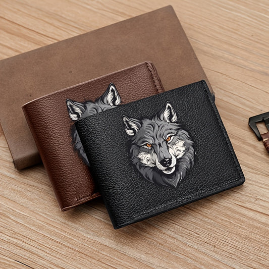 Men'S Vintage Faux Leather Credit Card Wallet | Majestic Wolf in Full Display - Slim & Soft Design with Multiple Card Slots, Business Style ID & Credit Card Holder, Travel Coin Purse, Perfect for Father'S Day Gift
