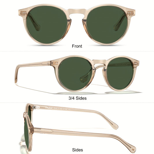 CARFIA Men's Round Acetate Sunglasses - Polarized Protection, Classic Retro Full-Rim Tortoiseshell Frame, Vintage Style with Protective Case for Outdoor & Casual Wear, UV Protection, Stylish Eyewear, Sturdy Construction, Pola