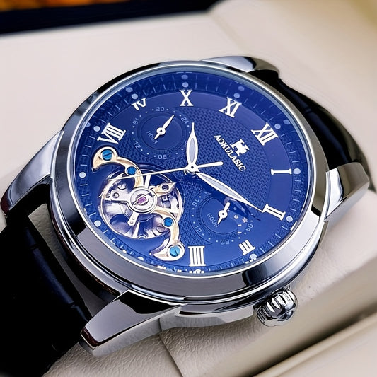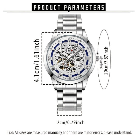 Stylish Men's Automatic Mechanical Watch - Stainless Steel Case & Band, Classic Double Hollow Design, Perfect Gift