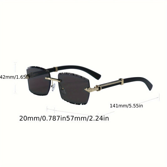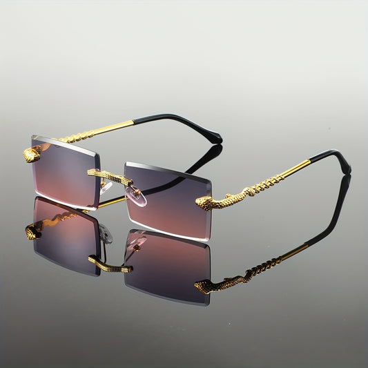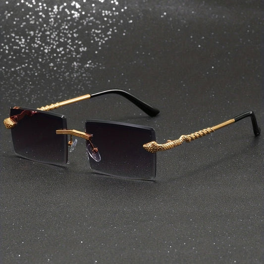 Vintage Style Square Rimless Glasses with Snake Design, Zinc Alloy Frame, Black Lenses, ENSARJOE