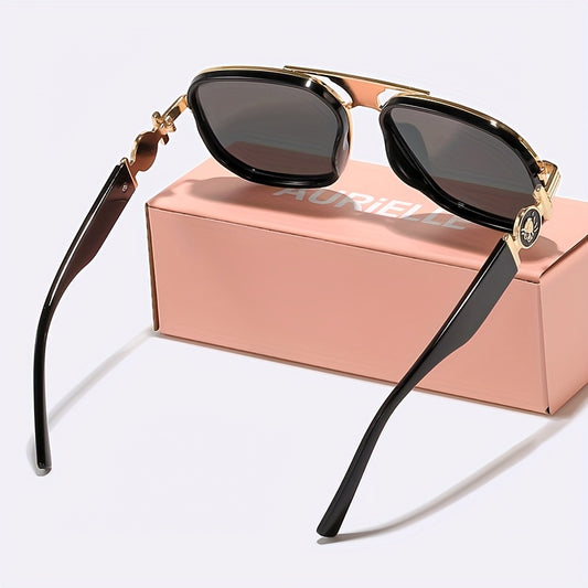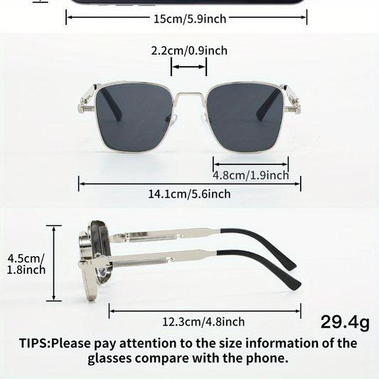 Unisex Geometric Metal Frame Fashion Glasses - Double Beam Design Decorative Eyewear for Everyday Casual Wear, Lightweight & Durable, Black Lenses, Stylish Accessory