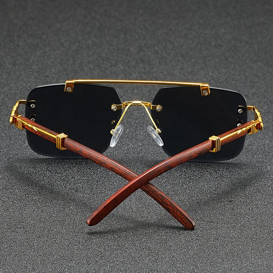 A Pair of Frameless, Beveled-Edge, Square Double-Beam Glasses, New Trendy Leopard-Print Fashion, Faux Wood Grain, Versatile for Men And Women, for Taking Photos.