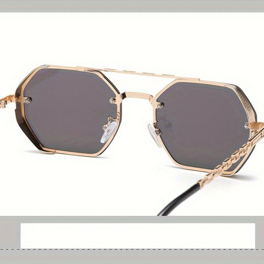 1pc Stylish Polygonal Golden Frame Fashion Glasses with Chain Link Design - Black Metal Fashion Glasses for Fashion-Forward Look