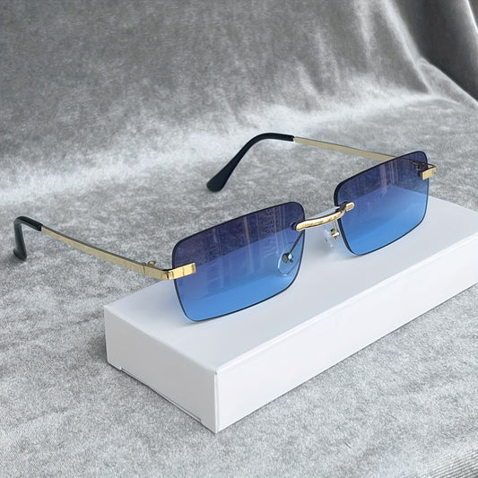 1 Pair Y2K-Inspired Rimless Fashion Glasses - Blue & Golden Frameless Eyewear with Polycarbonate Lenses, Lightweight Durable Rectangular Design for Men & Women, Casual Streetwear, Parties, Everyday Fashion Accessories, Party