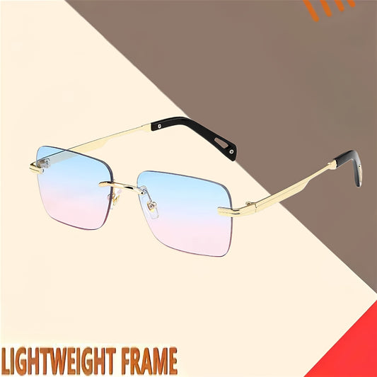 Lightweight Aluminum Alloy Frameless Square Fashion Glasses - Unisex Retro Style with Gradient Pink to Blue Lenses, Metal Hinges & Screws - Perfect for Driving & Holiday Gifts, Eyewear, Trendy Eyewear, Durable Eyeglasses