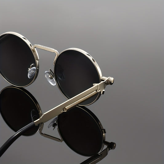 Men's Retro Round Fashion Glasses - Zinc Alloy Frame & Blue-Tinted Polycarbonate Lenses, Y2K Vintage Style for Everyday Fashion, Special Occasions & Holiday Gifts, Vintage Glasses, Trendy Eyewear, Bold Design, Durable Lenses,