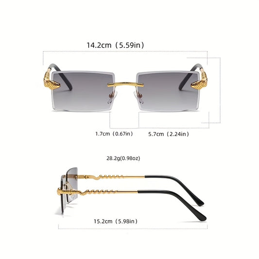 1 pair of ladies metal rectangular rimless snake pattern decoration glasses legs high quality leisure European and American hot style glasses, suitable for street shooting parties and parties to wear