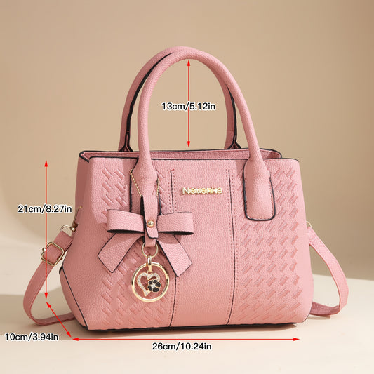 Elegant Pink Women's Handbag - Luxury Crossbody & Shoulder Bag with Golden-Tone Hardware, Magnetic Closure, and Stylish Bow Accent, Travel Crossbody Bag | Structured Design | Textured Surface