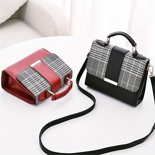 Mini Checkered Crossbody Bag, Fashion Top Handle Square Purse, Casual Shoulder Bag For Women