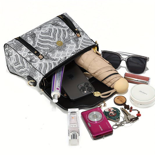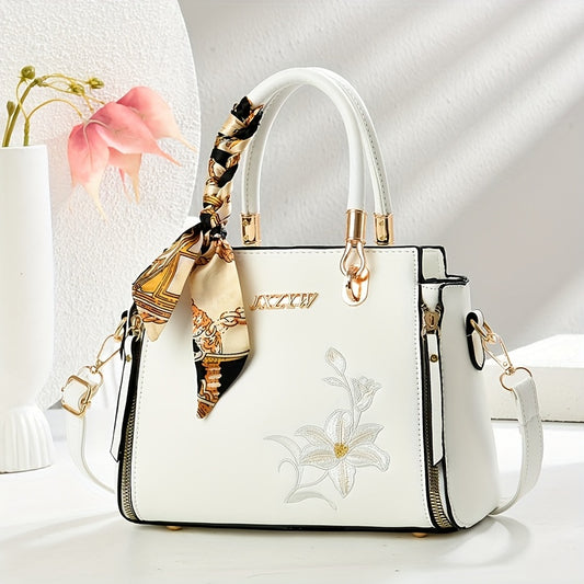 Gift for Mom, Stylish Large Capacity Crossbody Bag with Embroidery, Shoulder or Diagonal Carry Women's Handbag, Fashionable Tote Bag for Family, Perfect Gift for Mother