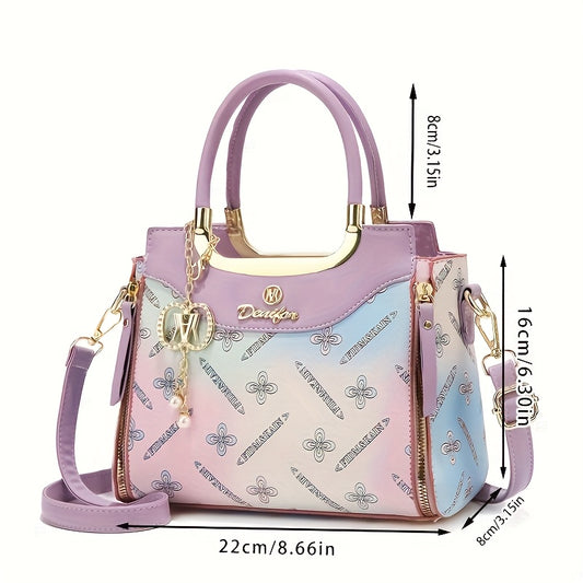LOEYN Women'S Elegant Crossbody Bag with Detachable Strap - Chic Floral & Butterfly Print, Golden-Tone Hardware, Zipper Closure, Polyester Lining - Perfect Gift for Mom, Versatile Shoulder & Handbag, Fashion Accessory | Flora