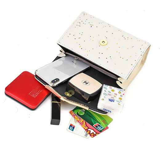 A Festive Mini Shoulder Bag with Shiny Details - Made of PU Material, Lightweight, Featuring an Adjustable Strap And Magnetic Closure, Perfect for Gifting to Family And Friends During The Holidays.