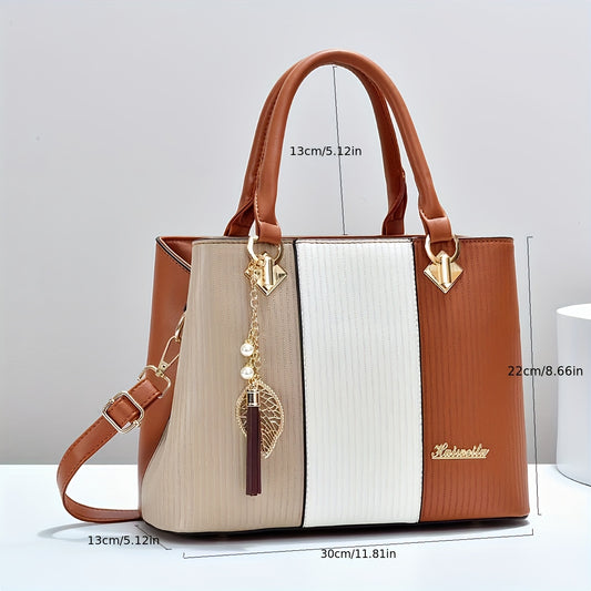 3pcs Set Striped Fashion Handbags, Multifunctional Large Capacity Crossbody Bag with Stylish Design, New Fashionable Women's Small Square Shoulder Bags Versatile Casual Multi-Layer Large Capacity Single-Shoulder or Crossbody