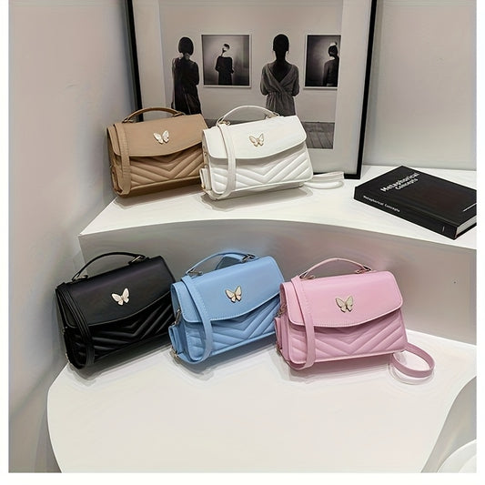 Elegant Women'S Crossbody Bag with Butterfly Decor – Stylish Black Synthetic Synthetic Faux Leather Handbag, Quilted Design, Magnetic Closure, Versatile Solid Color Shoulder Bag for Everyday Use, Small Crossbody Bag