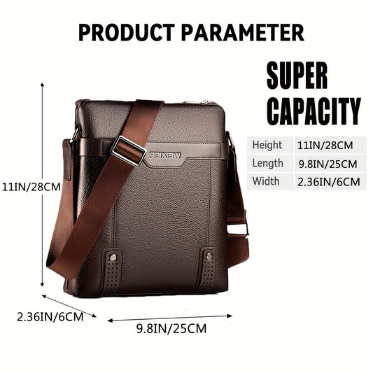 WEIXIER Men's Fashion Crossbody Bag - Adjustable Strap, Faux Leather, Deep Brown Casual Street Style Shoulder Bag for Outings