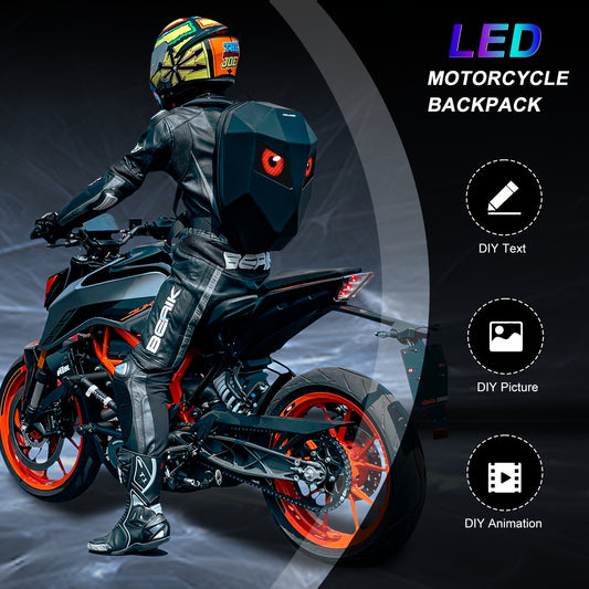 Crelander LED Men'S Motorcycle Backpack - Sleek Black Red Hard Shell Travel Bag with USB Charging, 48.01cm x 35.56cm Capacity, Ergonomic Design for Camping, Cycling Outdoor Adventures, Motorcycle Bag, Adventure Gear, Stre