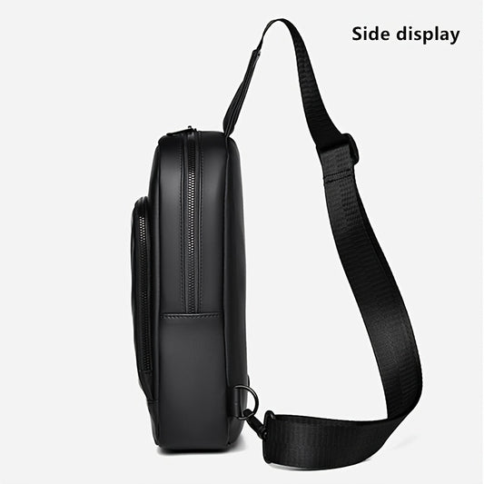 Men'S Casual Chest Bag, Faux Leather, Single Shoulder Bag, Zipper Closure, Uncharged, with Sewing Thread, Non-textile Weaving Method, No Printing, 100cm Shoulder Strap Length, for Daily Commute