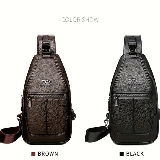 2025 New Men'S Fashion Chest Bag - Soft Faux Leather Anti-Theft Crossbody Bag with Multiple Compartments, Adjustable Strap Zipper Closure for Gym, Travel, Casual Outings (Brown), Secure Travel Pouch, Textured Finish
