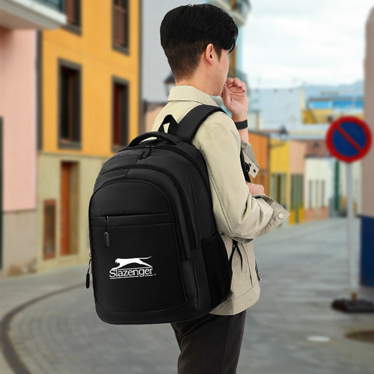 Slazenger R40 Casual Backpack - Sleek Black with White Logo, Durable Fabric, Multiple Compartments Padded Shoulder Straps for Daily Commute, Travel, School, Work, Backpack for Travel, Urban Carry, Versatile Bag, Sturdy Cons