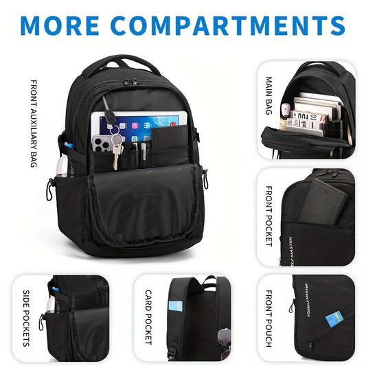 Men's Stylish Large Capacity Backpack - Black, Business Travel Ready with Multiple Compartments, Durable Lightweight Design, Perfect for Daily Commute Computer Use, Backpack for Travel, Highquality Luggage