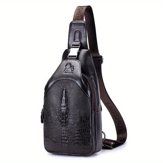 HUMERPAUL Men'S Casual Brown Leather Crossbody Bag with Alligator Print - Adjustable Strap, Multi-Compartment, Everyday Commute Shoulder Bag, Everyday Bag Casual Style Bag Adjustable Strap Bag