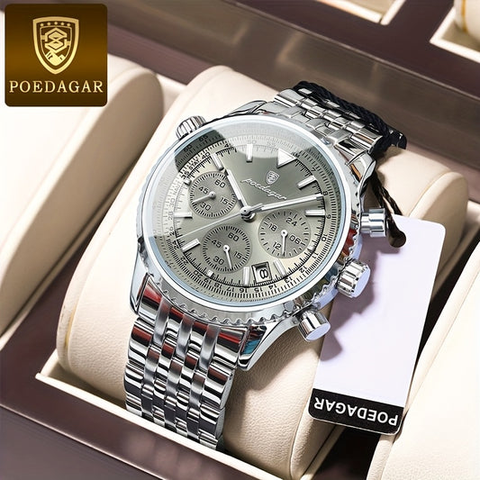 POEDAGAR New waterproof luminous calendar stainless steel ultra-thin Men's watch fashion students Korean business luxury youth chronograph quartz wristwatch., Perfect for Thanksgiving