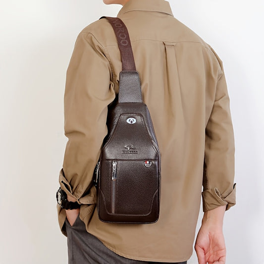 Men's Genuine Leather Crossbody Chest Bag, Top Layer Cowhide Genuine Leather Sling Bag, Large Capacity Double-Layer Chest Bag Shoulder Bag, Perfect for Valentine's Day, Teacher's Day, Back-to-School, Graduation, and Christmas