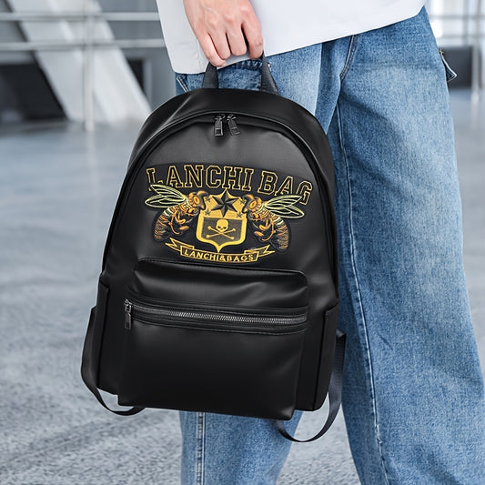 Men'S Genuine Backpack - Large Capacity, Multi-Functional Trolley Bag with Adjustable Straps, Golden Embossed Design, Perfect for School, Work, or Travel, Backpack for Travel, Durable Zipper Closure