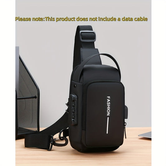 Men's Lightweight Crossbody Backpack with USB Charging Port Password Lock, Adjustable Anti-Theft Shoulder Bag for Travel, Commuting, Daily Use - Durable Polyester Casual Daypack, Secure Travel Bag Minimalist Backpack Sl