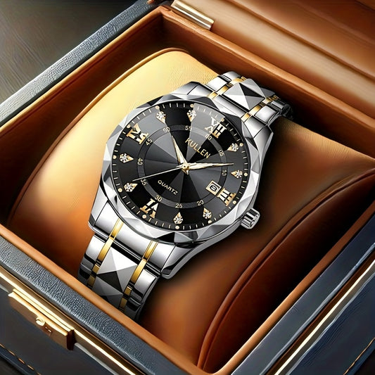 Elegant Men'S Quartz Watch with Stainless Steel Band, Alloy Case & Round Dial - Elegant Timepiece, Ideal for Business Professionals, Perfect Valentine'S Day & Thanksgiving Gift